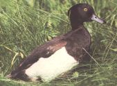 Jak wygląda czernica? Czernica (Nyroca fuligula). Kaczor w upierzeniu godowym ma głowę, szyję, pierś i grzbiet czarne, na głowie zwisający czubek. Skrzydła czarne z białym lusterkiem. Barwa czarna ma metaliczny, fioletowy połysk. Boki i brzuch białe. Podbrzusze brunatne, a przy ogonie prawie czarne. Ogon brunatno-czarny. Dziób i nogi niebieskawoczarne. W okresie letnim kaczor zmienia barwę piór z czarnej na ciemnobrązową bez połysku. Samica ma głowę, szyję, pierś, grzbiet i skrzydła ciemnobrunatne. Brzuch biały, boki brunatnawe. Przy dziobie jasna obwódka. Samica podobnie jak samiec ma czubek na głowie, jest on jednak nieco mniejszy.